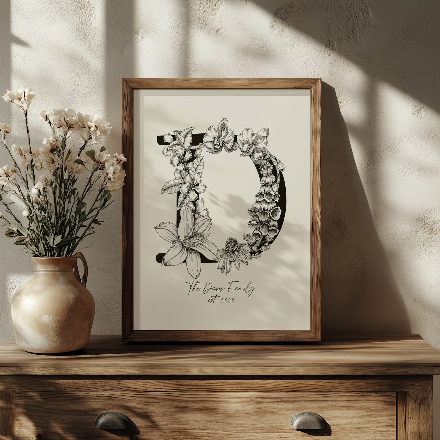 Celebrate the significance of identity with The Rooted Collection — a hand-illustrated alphabet series where each letter is uniquely brought to life with intricate pen and ink florals.