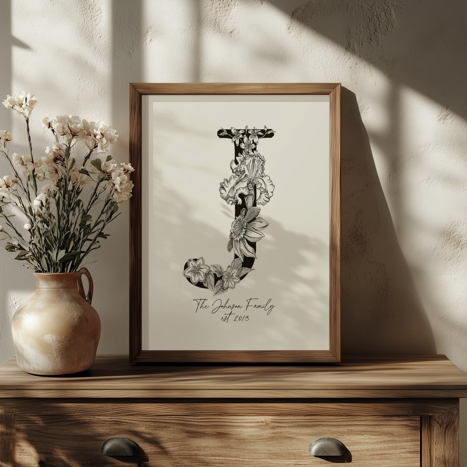 Celebrate the significance of identity with The Rooted Collection — a hand-illustrated alphabet series where each letter is uniquely brought to life with intricate pen and ink florals.