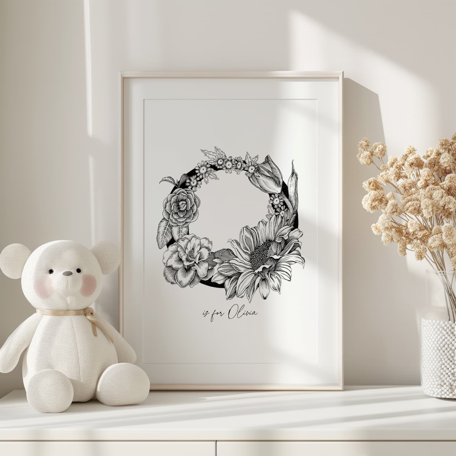 Perfect for personalizing any space, these pieces are beautiful on their own—or can be customized with a first name or family name, blending art and sentiment. Whether honoring a new arrival or new beginning, these pieces are thoughtful keepsake gifts for new babies, birthdays, engagements, weddings, anniversaries, or housewarmings.