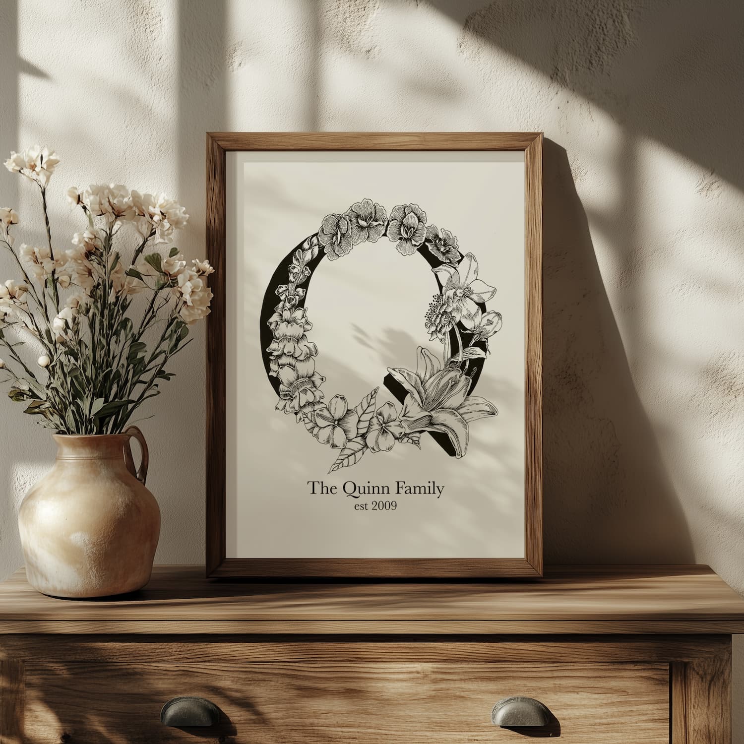 Celebrate the significance of identity with The Rooted Collection — a hand-illustrated alphabet series where each letter is uniquely brought to life with intricate pen and ink florals.