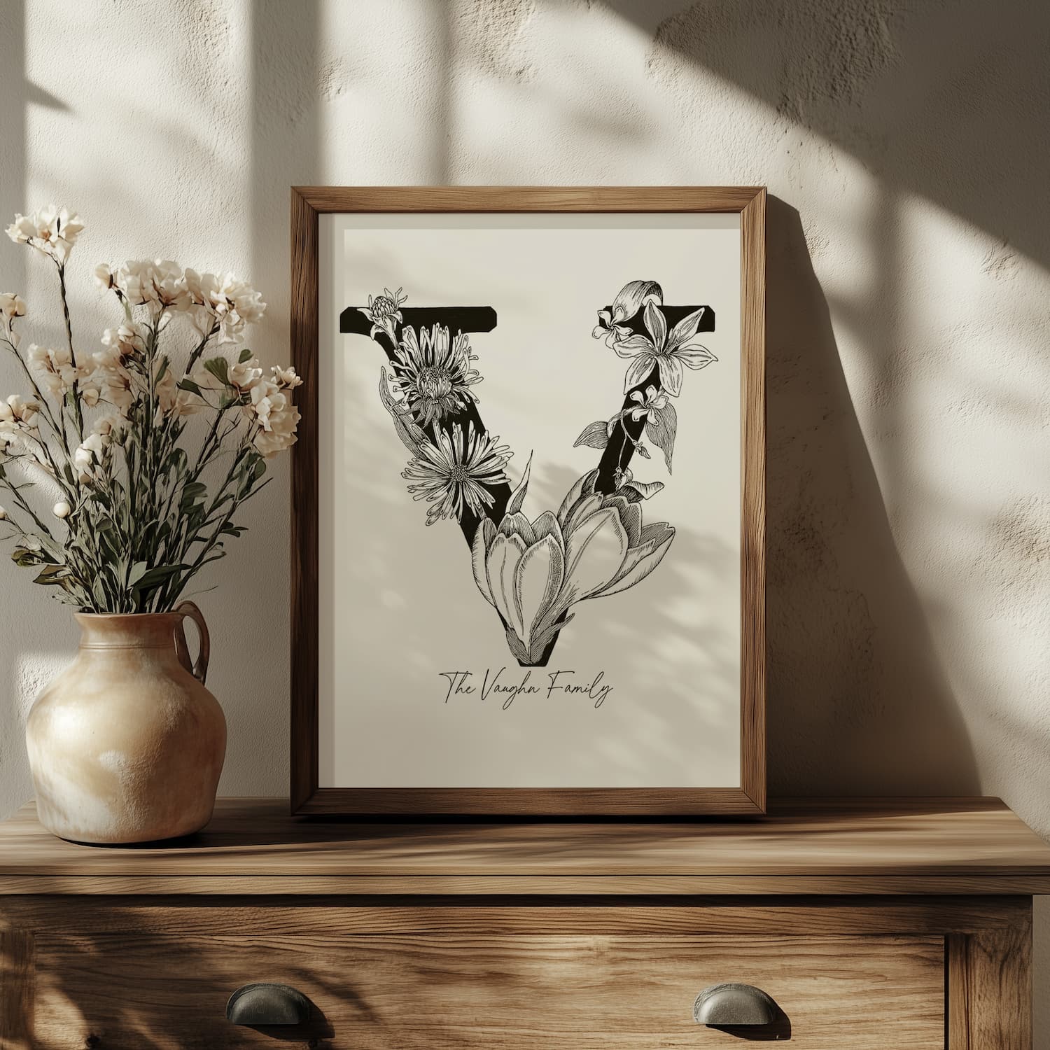 Celebrate the significance of identity with The Rooted Collection — a hand-illustrated alphabet series where each letter is uniquely brought to life with intricate pen and ink florals.