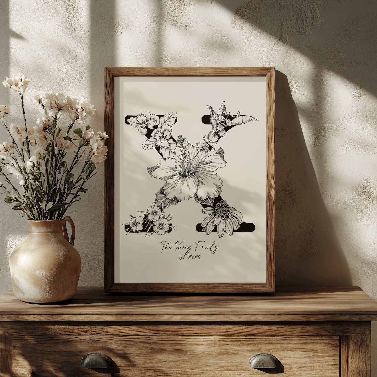 Celebrate the significance of identity with The Rooted Collection — a hand-illustrated alphabet series where each letter is uniquely brought to life with intricate pen and ink florals.